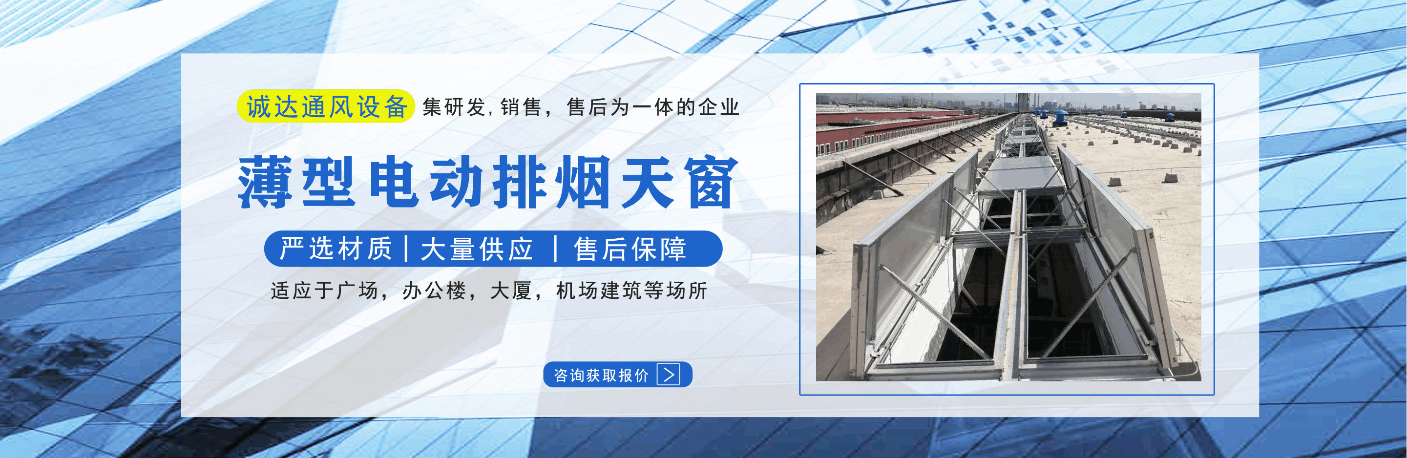 山東誠達通風設備有限公司主營排煙天窗,電動排煙天窗,消防天窗,一字型消防電動排煙天窗,薄型電動排煙天窗等產品,質量可靠,歡迎前來咨詢訂購!  公司憑借雄厚的實力,豐富齊全的規格品種,完善的質量保證,合理的價格,優質的服務,不斷地受到新老用戶及業內人士的肯定和信任,我們本著及用戶之所及,想用戶之所想的服務宗旨不斷地拼搏,進??!  公司真誠的歡迎社會各界朋友蒞臨本公司參觀考察,同時也非常感謝所有新老客戶的信賴和支持。...